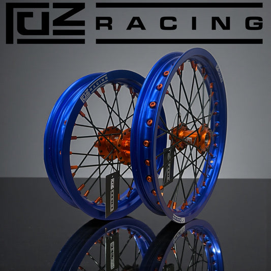 Surron Ultra 21 / 18” Orange Rims - Blue Hub - Blue Nipples By Fuze Racing